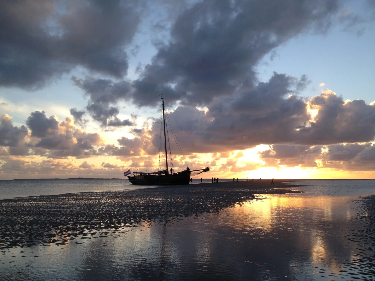 Plattbodenboote wie die Willem Jacob und die Minerva sind zum Austrocknen bestimmt. Beim Austrocknen fährt das Schiff bei Flut über einer Sandbank. Da das Wasser nachlässt, landet das Schiff auf dem sandigen Grund des Wattenmeeres. Anschließend können Sie von Bord gehen und über den Meeresboden laufen.