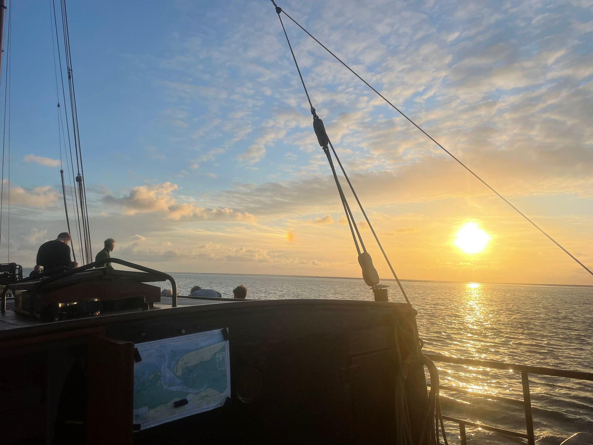You can help with the sailing, but you can also quietly enjoy the surroundings. It is nice and quiet on the water, while the surroundings get more and more beautiful shades of the setting sun.