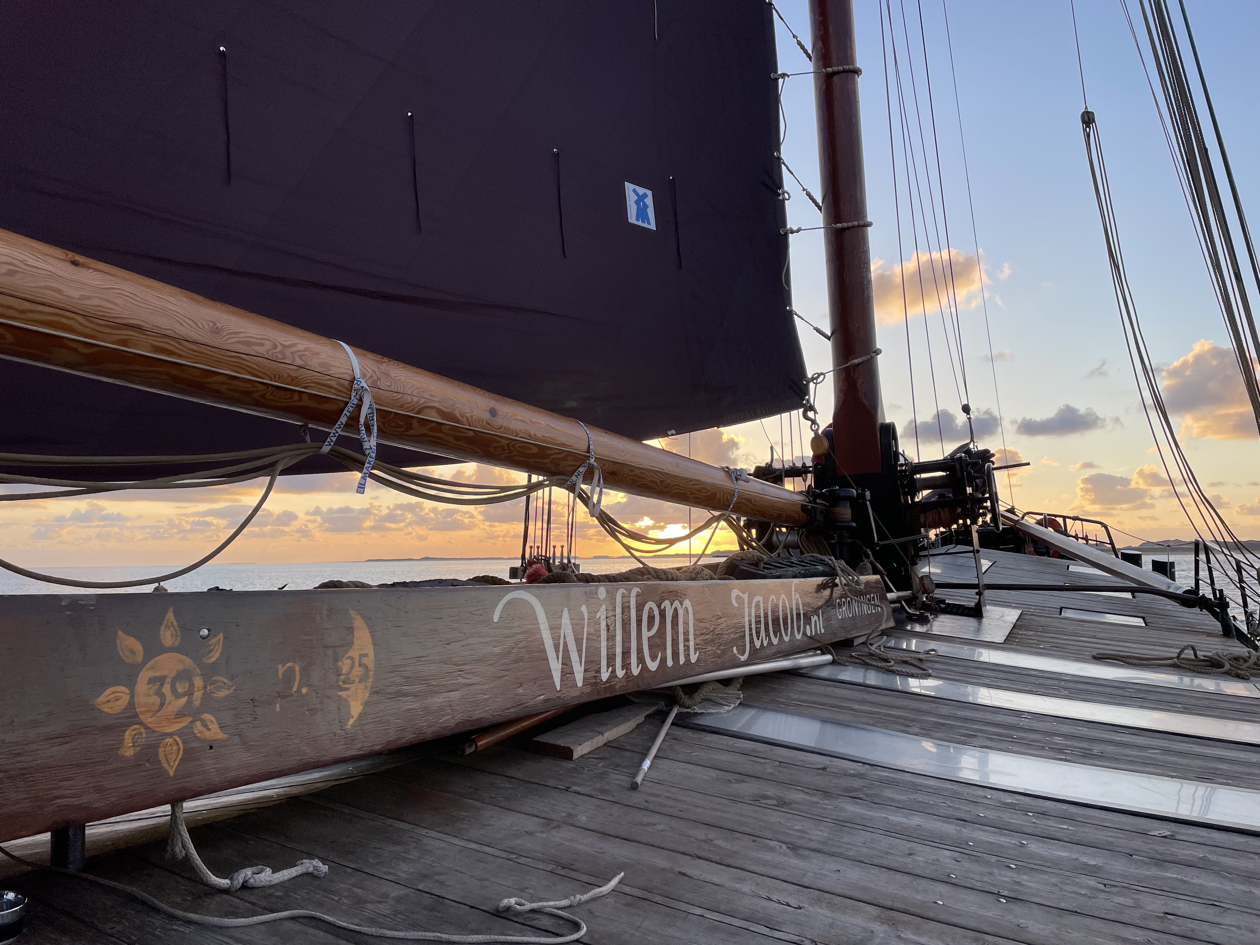 You can help with the sailing, but you can also quietly enjoy the surroundings. It is nice and quiet on the water, while the surroundings get more and more beautiful shades of the setting sun.