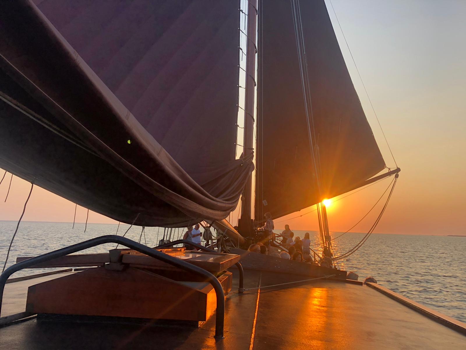 You can help with the sailing, but you can also quietly enjoy the surroundings. It is nice and quiet on the water, while the surroundings get more and more beautiful shades of the setting sun.