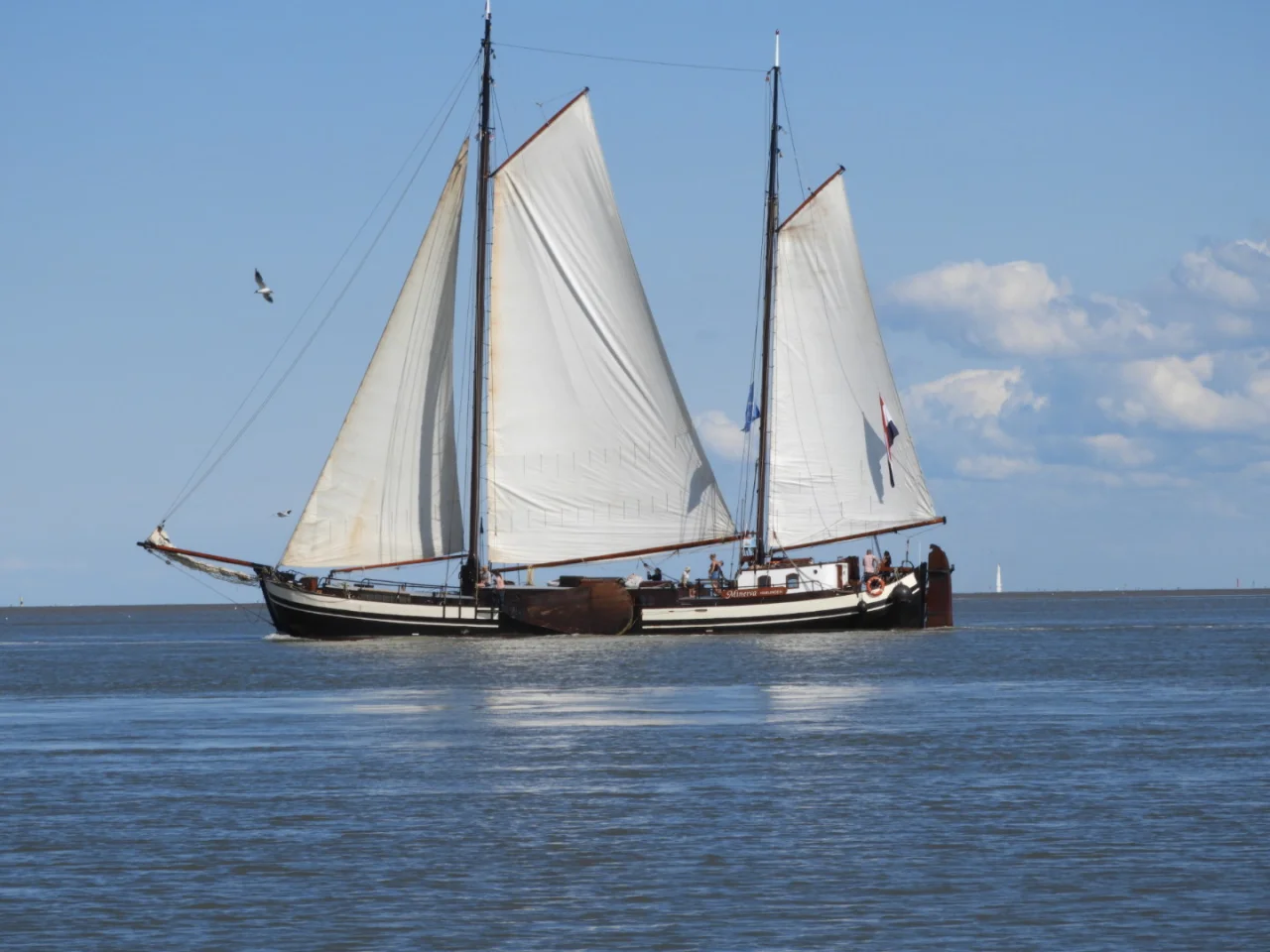 De Minerva is een tweemast Stevenaak. Er is een ruim dek waardoor je gemakkelijk kan rondlopen en kan meehelpen met het zeilen. In het midden van het schip is er een comfortabele kuip, waar je heerlijk kan zitten. Op het achterdek vind je het stuurwiel. Hier hangen de zeekaarten en heb je een overzicht over het schip en de Waddenzee.