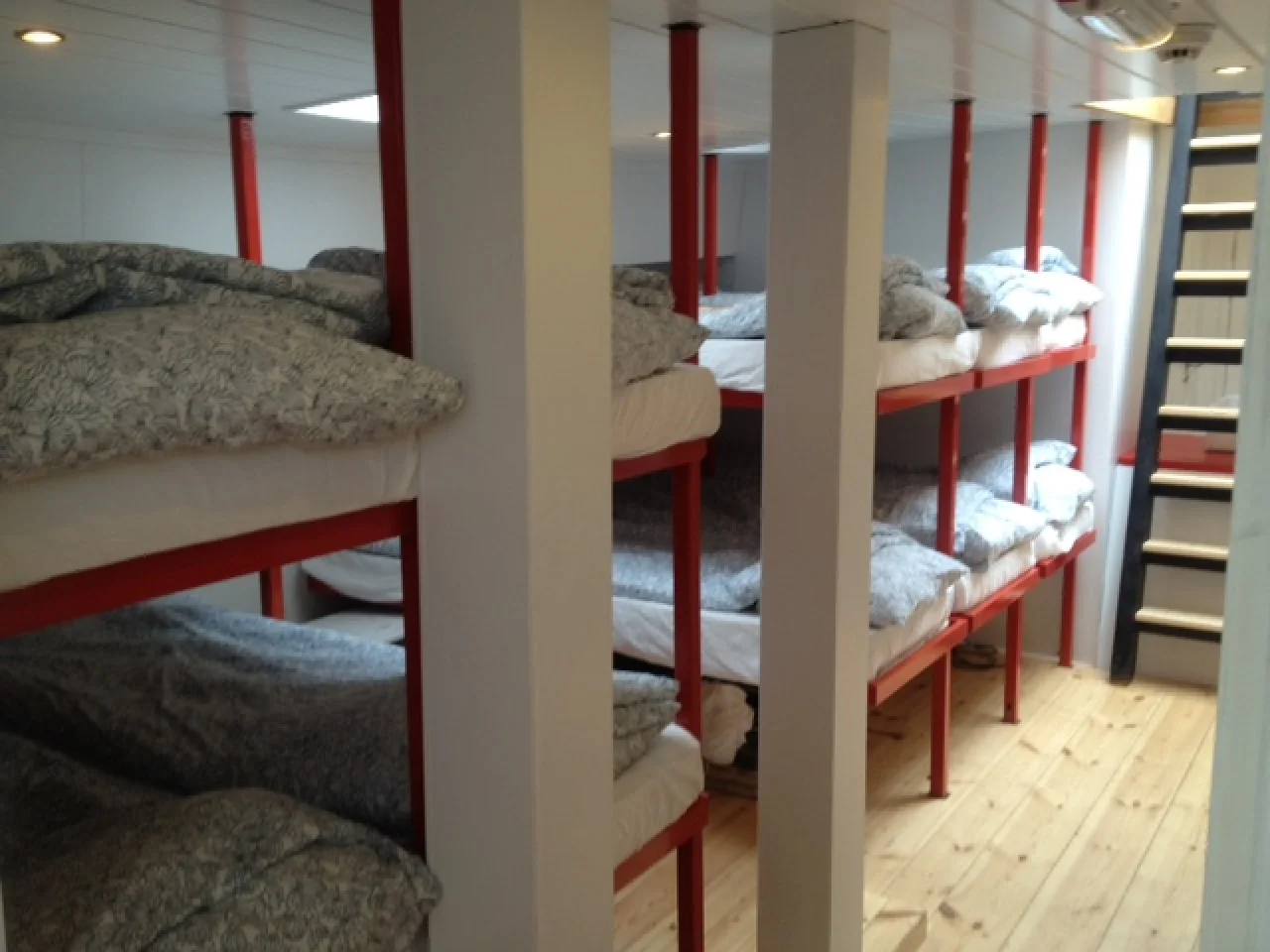 Het dagverblijf in het ruim vormt een scherp contrast met de buitenzijde van deze historische klipper: een open en moderne uitstraling. Het interieur is erg licht en heeft een open indeling. Je slaapt in het gemeenschappelijk slaapruim waar maximaal 16 gasten kunnen slapen. Er 1 toilet en een douche/toilet combinatie.